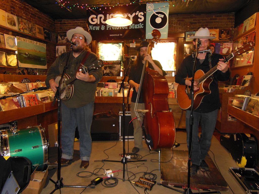 Last weekend, the stage at Grimey’s continued to be on fire, this time from a lively in-store by a trio of Nashville transplants, The Howlin’ Brothers. Having fine-tuned their live act playing around town, including a Lower Broadway stint at Layla’s Bluegrass Inn, the crowd-pleasing Brothers celebrated the release of their first major record, Howl. Just released on Brendan Benson’s Readymade Records, the Music City recording artist and sometimes Raconteur also handled the production chores. Promotion and distribution are in the hands of our friends at Thirty Tigers who keep shop just upstairs from Grimey’s.