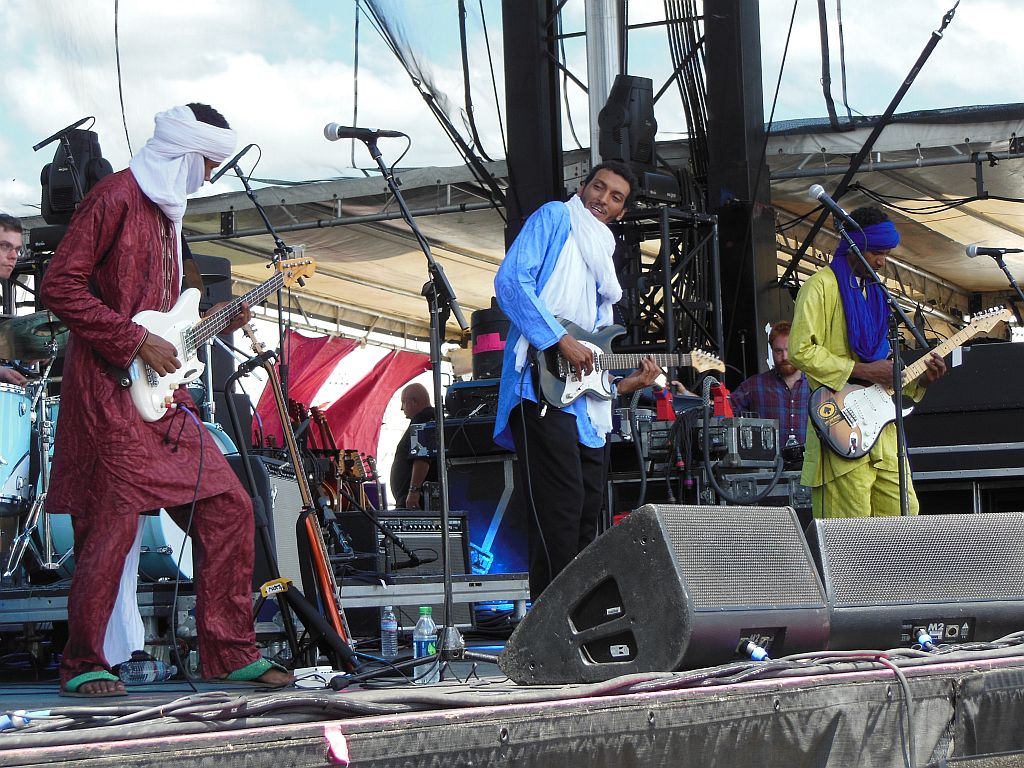 Dan Auerbach-produced Nigerian artist Bombino doesn’t speak any English. However he and his band were sure hot on the Forecastle stage on their electric guitars and in their native garb.