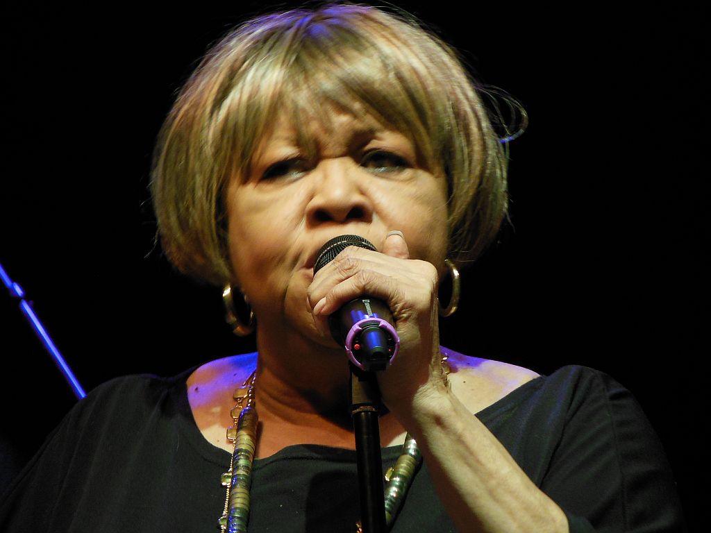 Right out of the box, the first few songs were horribly marred by some nasty and noisy feedback. Staples sure looked surprised when she didn’t get the answer she expected after asking the audience how things sounded. It was soon resolved. Then, Staple’s short time on stage was made even shorter by two mid-set band instrumentals that allowed her to sit and rest the weary knee. In addition, much performance time had too much revival-like, between-song banter and audience interplay. Finally, she took it too far when she stretched out the Staple Singers’ mega-hit “I’ll Take You There” with a seemingly never-ending audience sing-along.