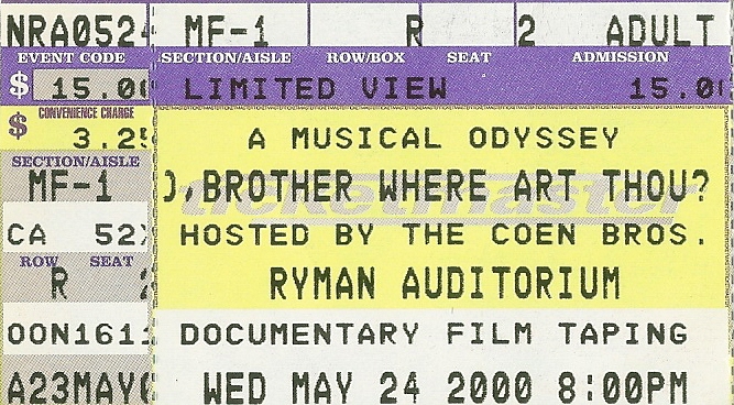 Attending the filming of a live concert for television or DVD can be a special treat. Sometimes, however, all of the extra preparation and retakes can make for an annoying experience. As far as I can remember, this musical celebration at the Ryman for the Coen Brothers film went off without a hitch.
