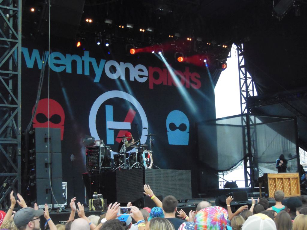 On a trip to the rest room, I took a quick look at these two strange dudes wearing ski masks called Twenty-One Pilots who were playing some bizarre sounds on the main stage.