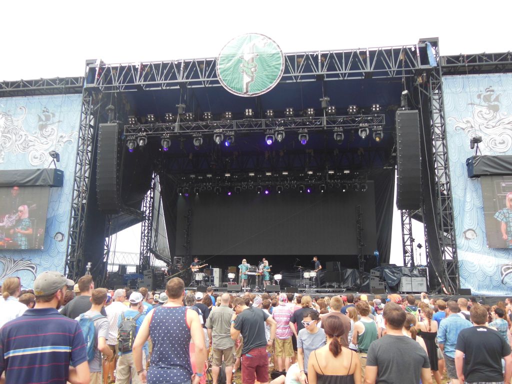 The acoustic jam band sound of Trampled By Turtles packed in a big crowd at the side stage that extended all the way back to the shade of the overpass.