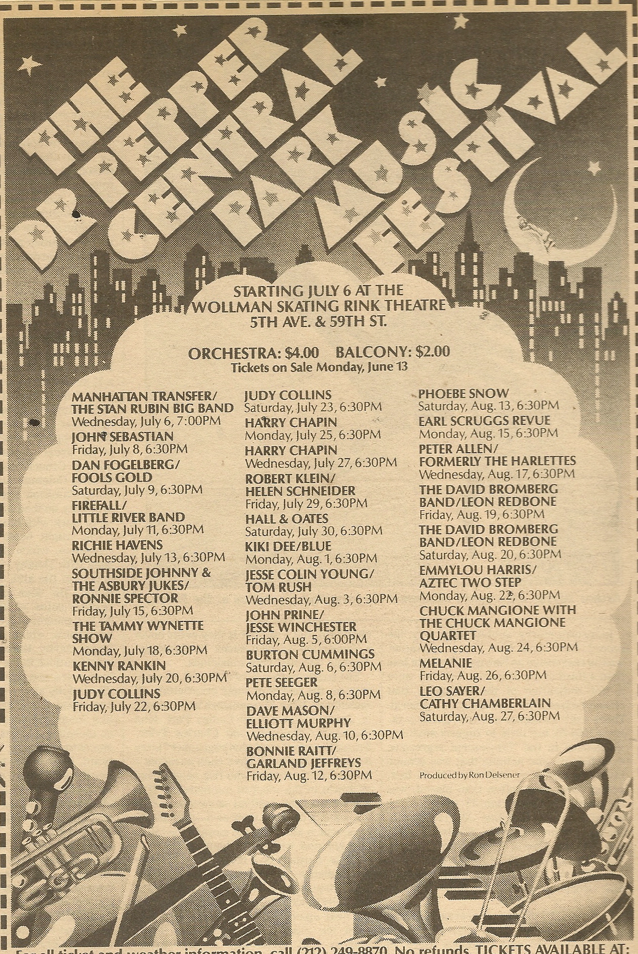 Growing up in New York in the late 70s, I looked forward every summer to the outdoor concert series held at the ice skating rink in Central Park. Although the shows weren’t free, they were cheap. During my tenure, orchestra seats started out at a mere $2.50 and were eventually raised to a still unthreatening $4.50. There was even a cheaper option for bleacher seats. You had to act fast in buying tickets since at these prices most shows were quick sell-outs.