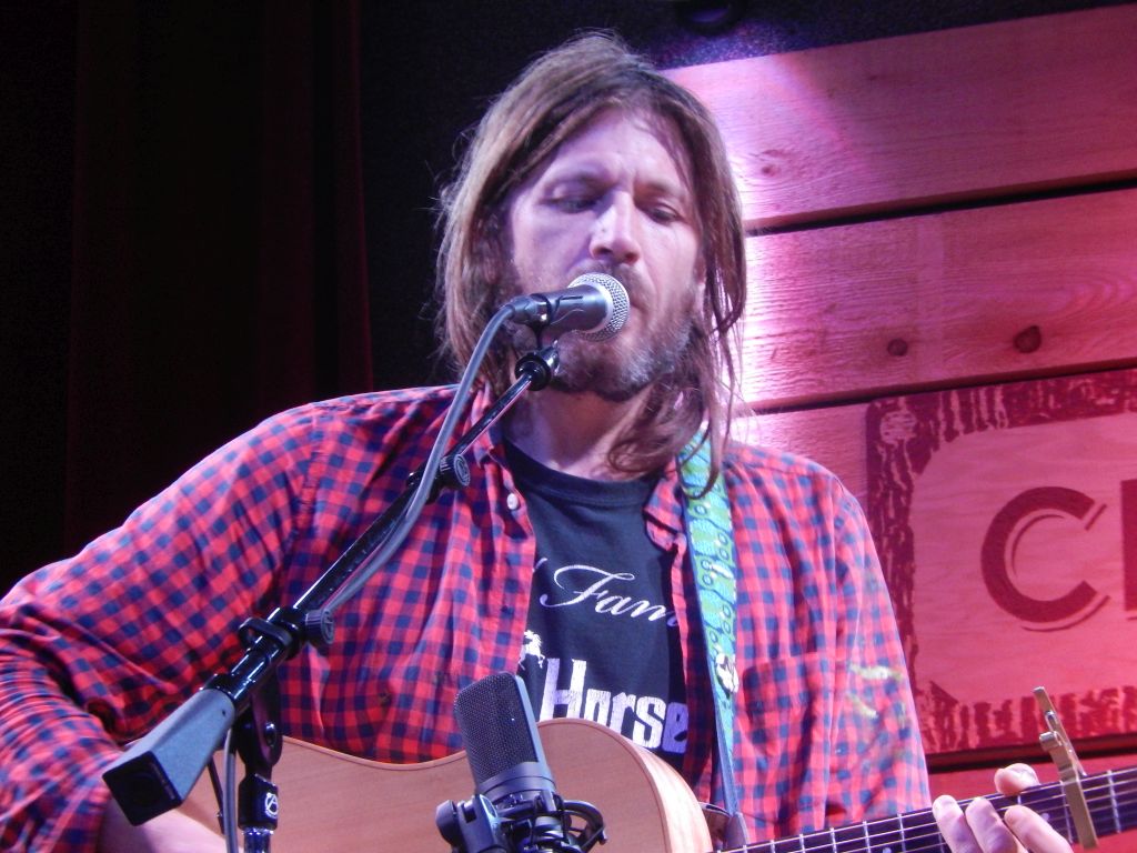 At about 8:50 pm, Dando abruptly walked on stage sans introduction. I would describe his looks as “rock star unkempt,” as he wore a red flannel over a tee with jeans and worn deck shoes. After a brief one-word “howdy” he was underway, singing mostly with his eyes shut.