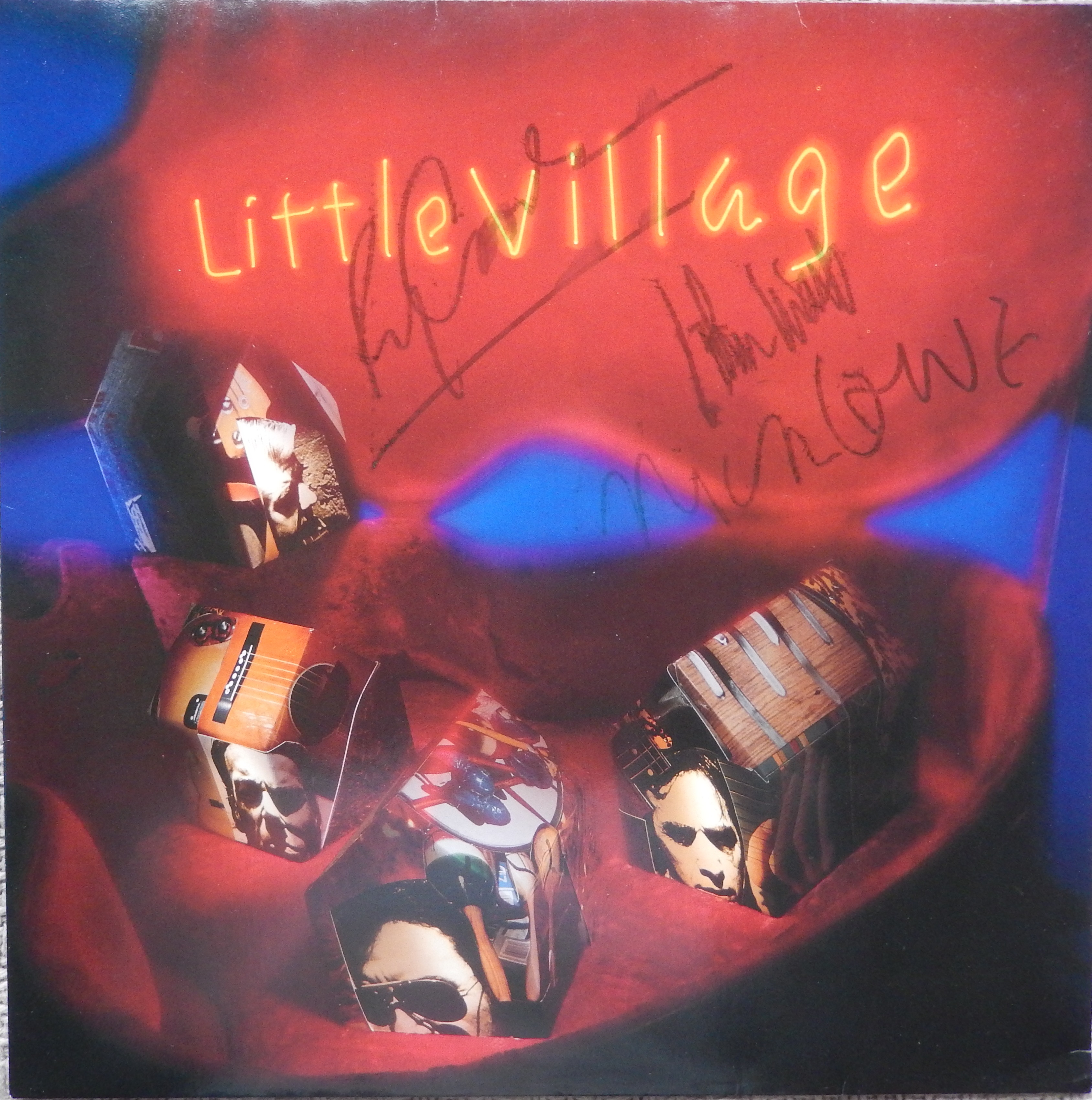 Little Village - Signed LPThe Terrace was your typical non-descript open room, and we all stood to hear Little Village skillfully perform songs from their record and Bring the Family while throwing in some Cooder (“Across the Borderline”) and Lowe (“Half a Boy and Half a Man”) cuts as well. However, through the legacy of Bring the Family, Little Village whether they tried to or not, very much came across as Hiatt’s band.
