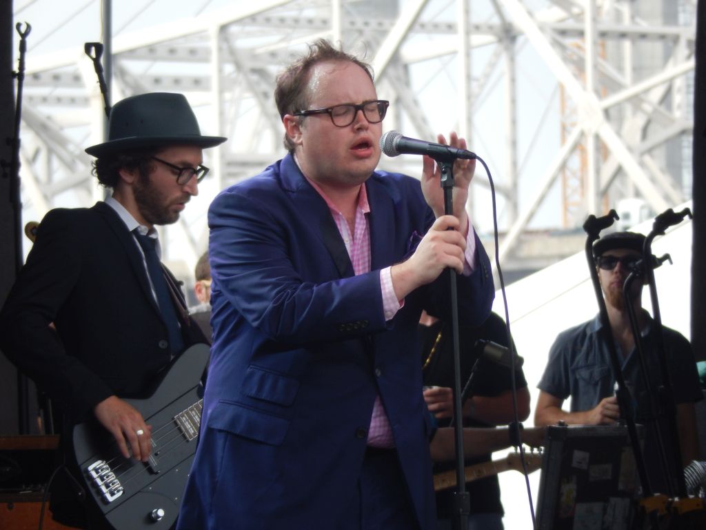 Still just feeling things out, a visit to the WFPK stage introduced me to the exquisite sounds of Brooklyn’s San Fermin. Even with two days to go, I expect that this outfit will win the prize as the band whose records I buy as a result of seeing them at the Festival. Sax and violin together in the same band? Nice.