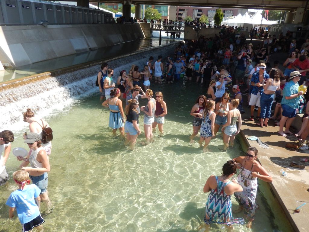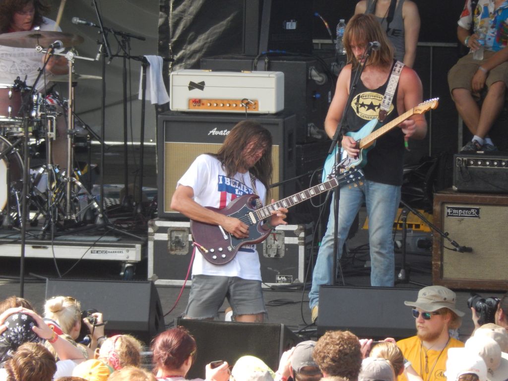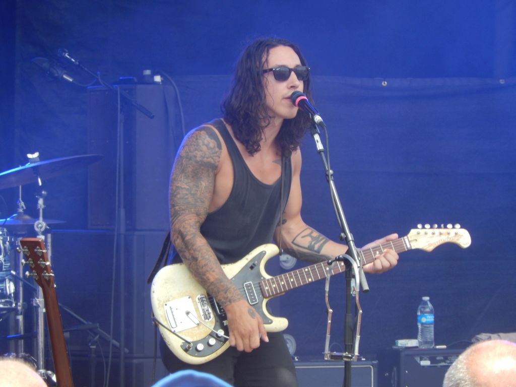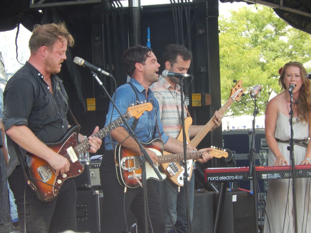 Simply put, it was a day unfit for watching live music outdoors. With a heat index of 103 and no cloud cover to speak of, standing with the sun beating down on my head was not much fun. So in between my retreats to the air conditioned VIP tent, I did manage to catch some great musical moments underneath the sweltering sun and from shady spots when I could find them. I also wondered who would be the first performer sensible enough to shed their rock star black jeans and come on stage in shorts. (Answer to follow below.)