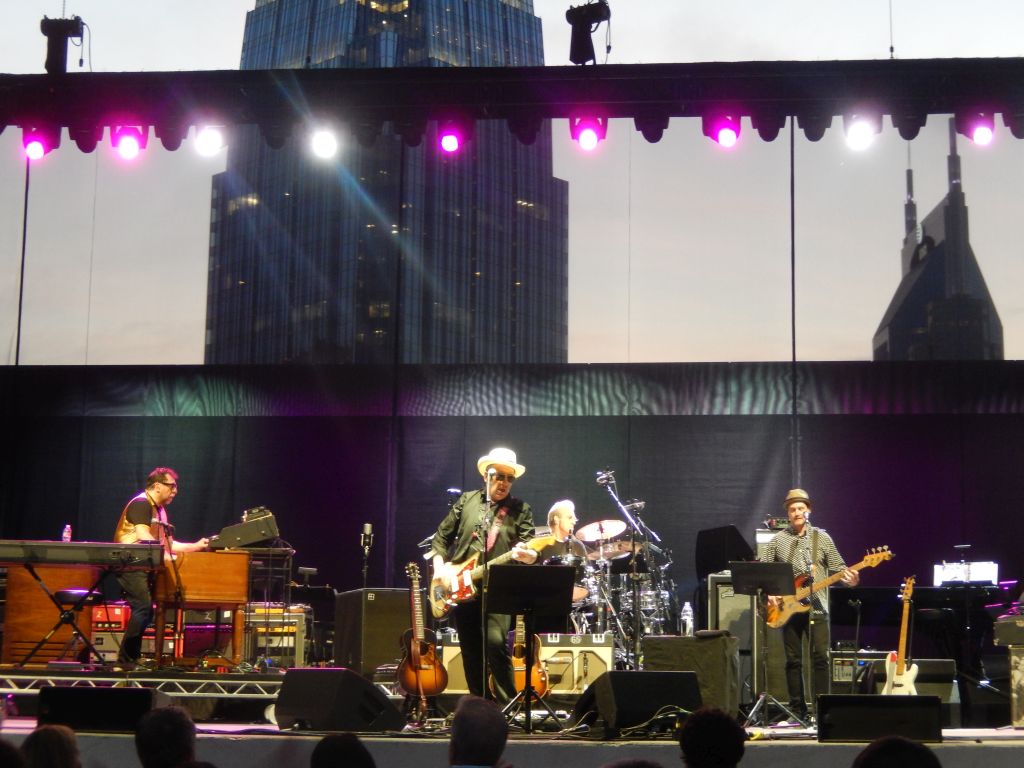 I guess it was fitting that my first concert at Nashville’s newest outdoor music venue would be my favorite artist and the one whose 1987 concert (with the Confederates at Vanderbilt) caused me to make my first visit to Music City. It was also somewhat strange since aside from a 2007 unscheduled slot as a solo opener at the Ryman for Dylan, it would be the first time I would see Elvis Costello, currently on tour supporting the “Mighty Dan of Steel,” as a planned opening act.
