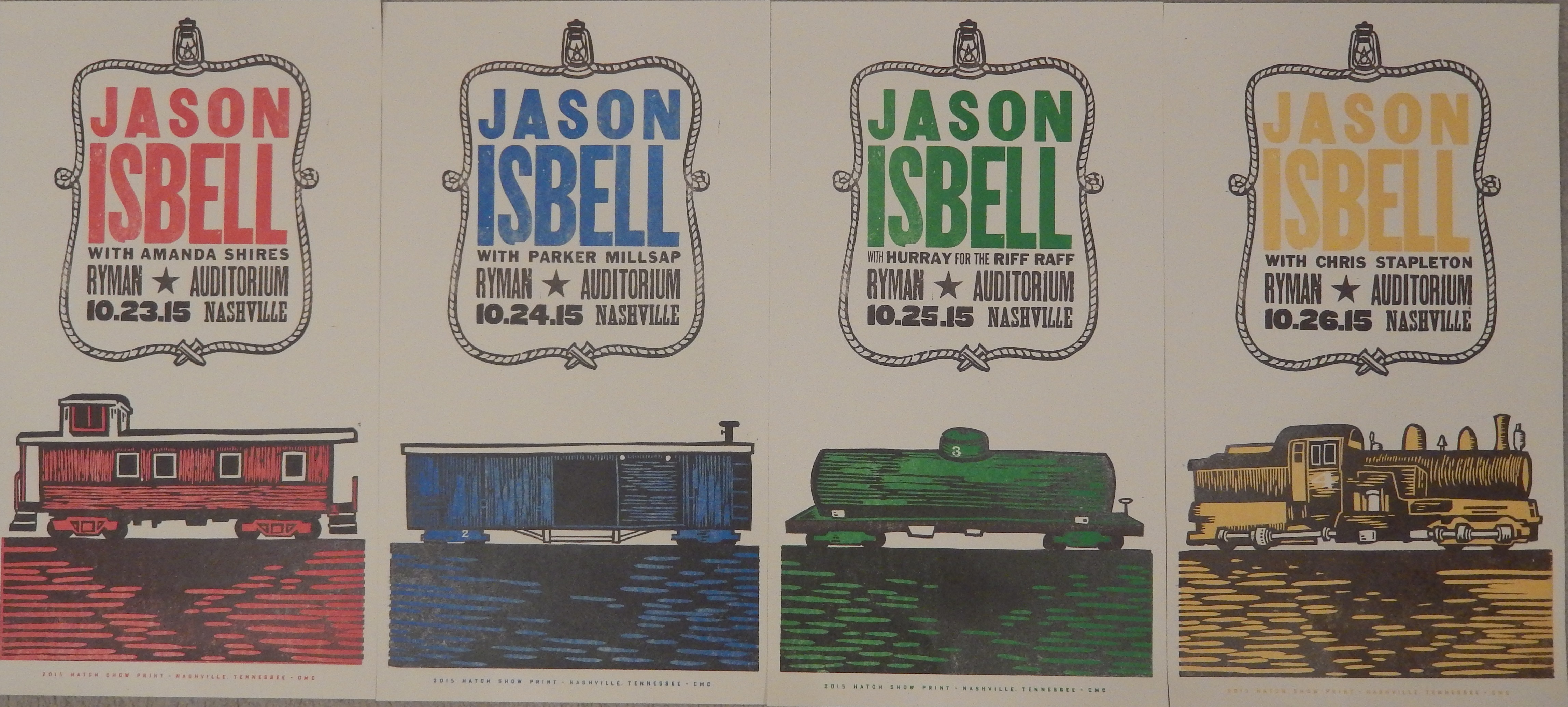 Playing at the Ryman also usually means the selling of a special limited edition Hatch Show Print. Here are the prints for the Jason Ryman runs.